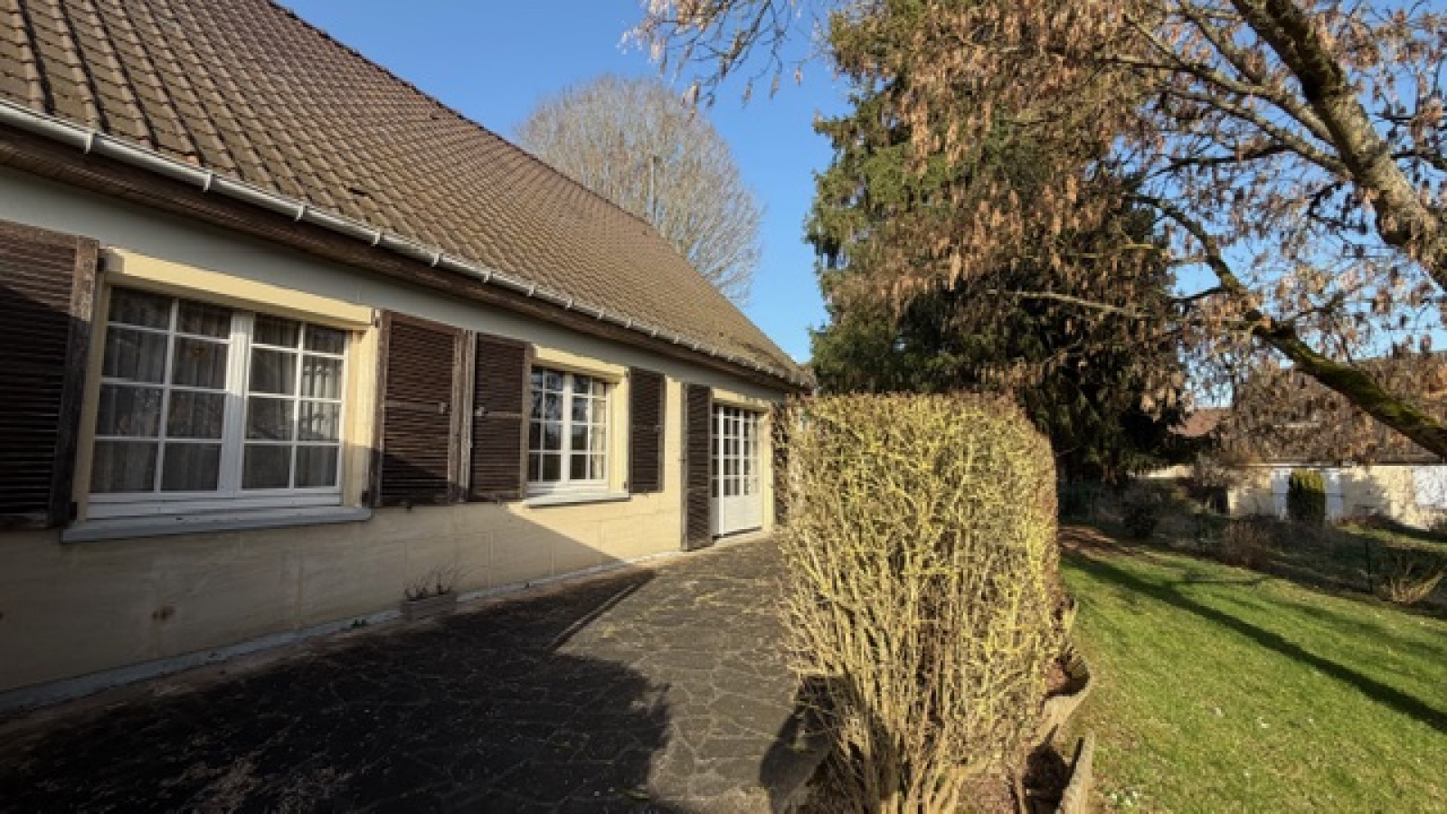 À l’extérieur, une terrasse vous permettra de profiter des beaux jours. La propriété dispose également d’un abri de jardin et d’un garage situé sur le côté de la maison pouvant accueillir deux véhicules.